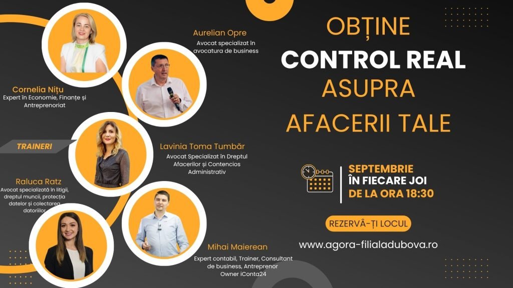 Nu pleci cu un „caiet de notițe”, ci cu instrumente reale, exemple clare și încrederea că îți poți conduce businessul mai informat și mai sigur.
